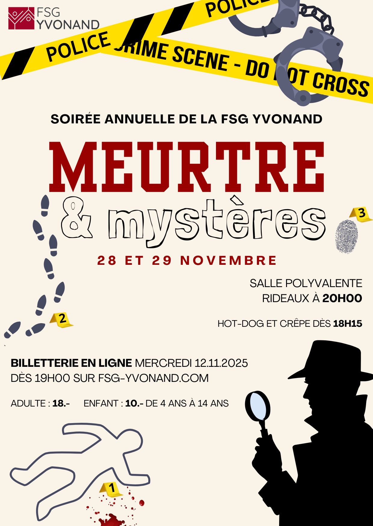 Comme chaque année, la société vous concocte un super spectacle à la salle polyvalente d’Yvonand le 28 et 29 novembre!